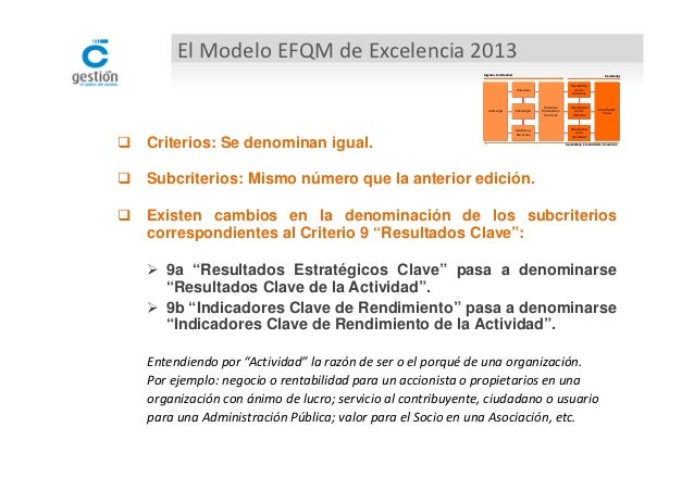 Beneficios-Gestion_EFQM. El modelo EFQM plantea un método para autoevaluar la gestión de cualquier. El EFQM se configuró como un modelo de gestión y auto evaluación, que. MODELO EFQM DE EXCELENCIA v. Y SU APLICACIÓN A LA ADMINISTRACIÓN.